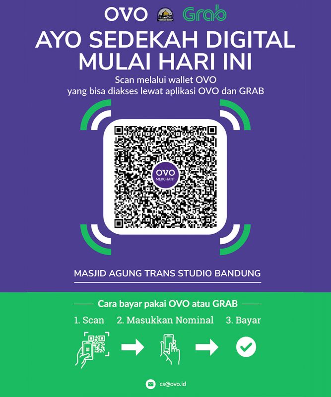 Masjid Agung Trans Studio Bandung menerima titipan zakat, infak, dan sedekah (ZIS) bagi jamaah yang ingin menginfakkan sebagian hartanya di jalan Allah Subhanahu Wata’ala. Dana yang dititipkan akan kami salurkan di antaranya untuk operasional masjid, lembaga pendidikan, lembaga kemanusiaan, mustahik, pembangunan masjid/madrasah, dan masyarakat yang membutuhkan.